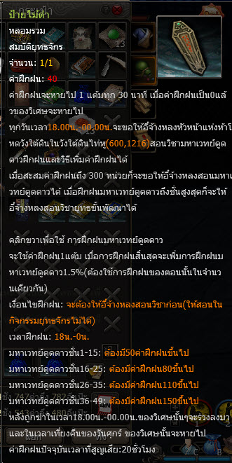 - ทุก 30 นาที จะเสีย ค่าฝึกฝน 1 แต้ม