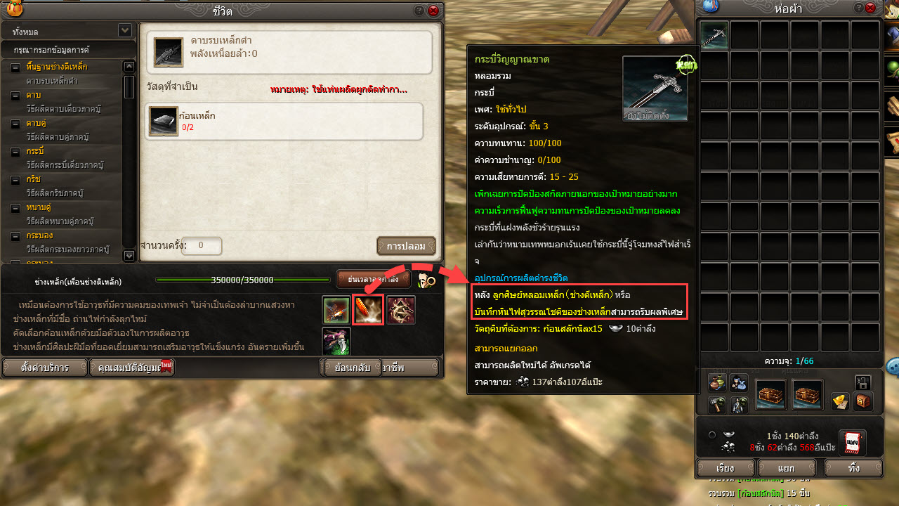 - สายอาชีพตามที่ระบบแจ้ง หากเราไม่ได้เรียน ก็ให้ไปหาผู้เล่นอื่นที่มีอาชีพนั้นๆ