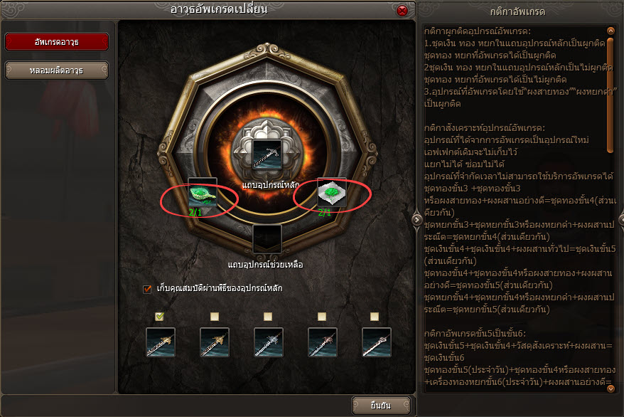 ตัวอย่าง การแลกอาวุธ + เปิดออพชั่น + อัพเกรดจนถึงขั้น 5